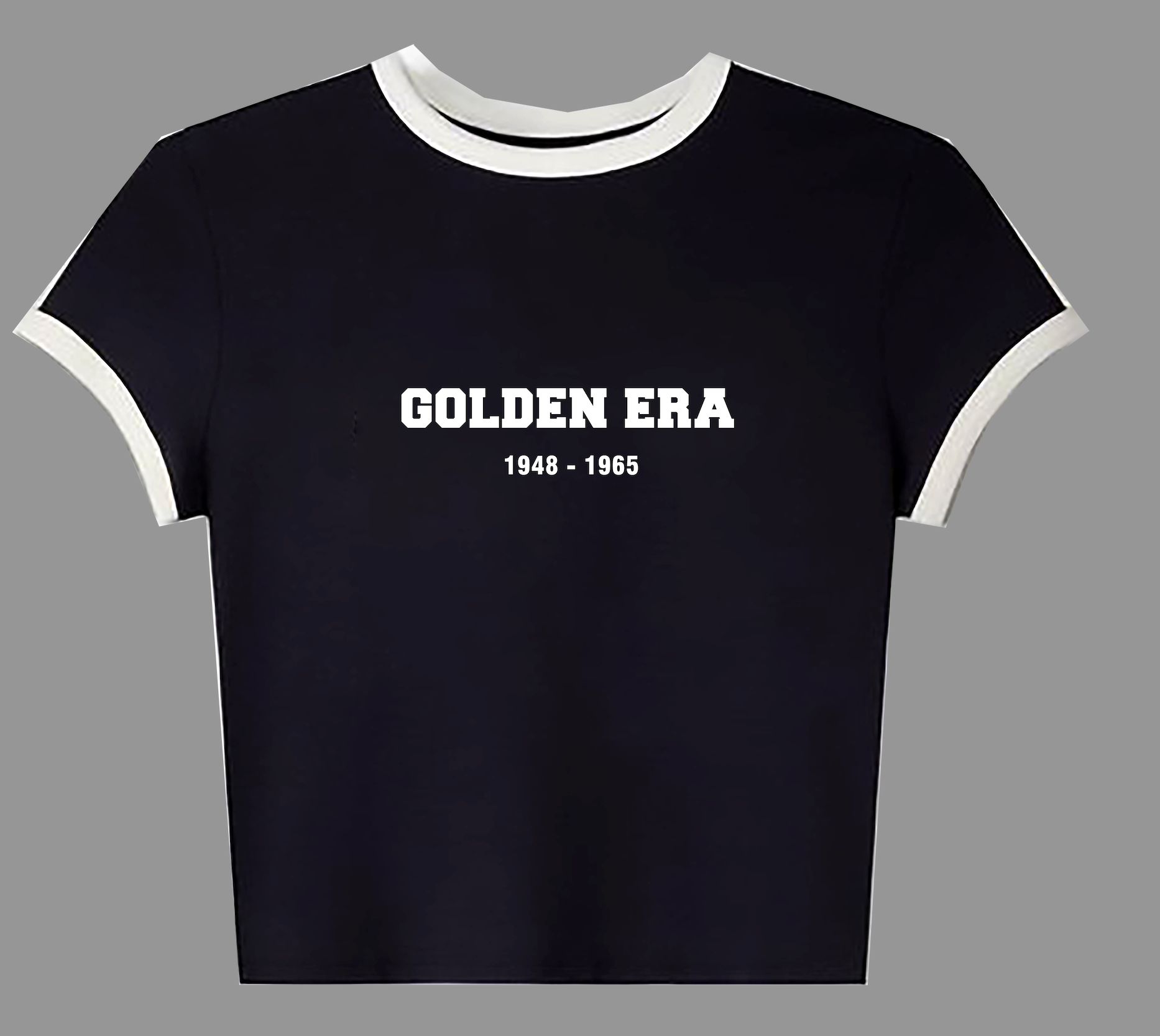 A tribute to the cinematic Golden Era (1948–1965).Cropped fit in soft black cotton with contrast white trims. Retro mood. Timeless silhouette.