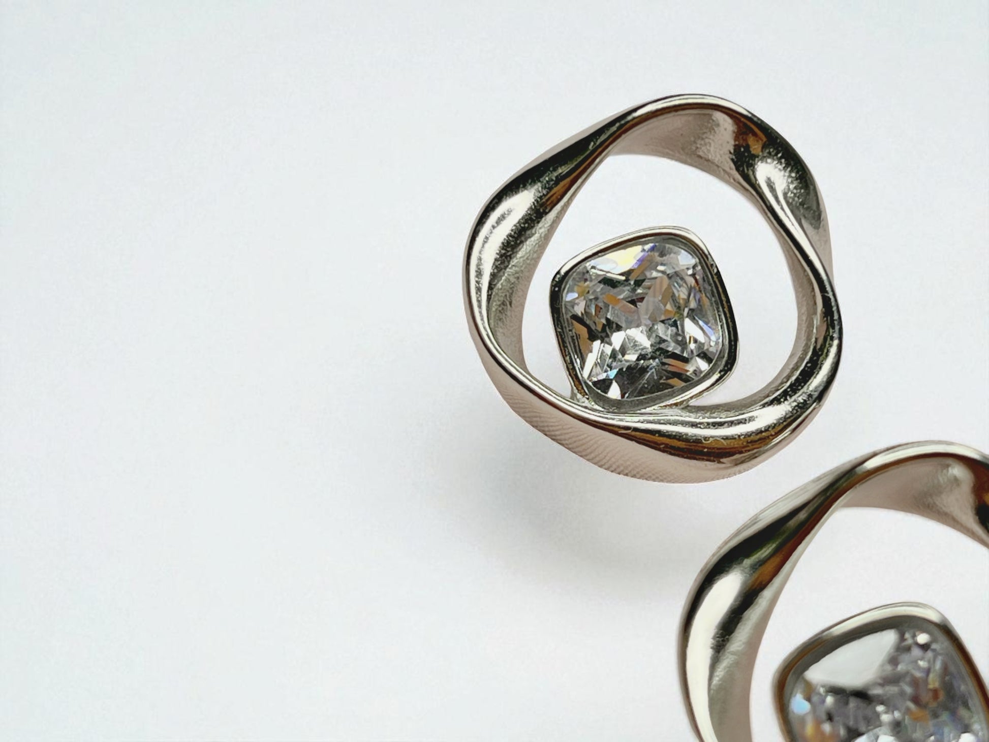 These sculptural molten twist studs wrap around a brilliant-cut stone with a modern, liquid-metal finish. Crafted to catch light from every angle, they balance organic curves with quiet luxury — perfect for day-to-night elevation.